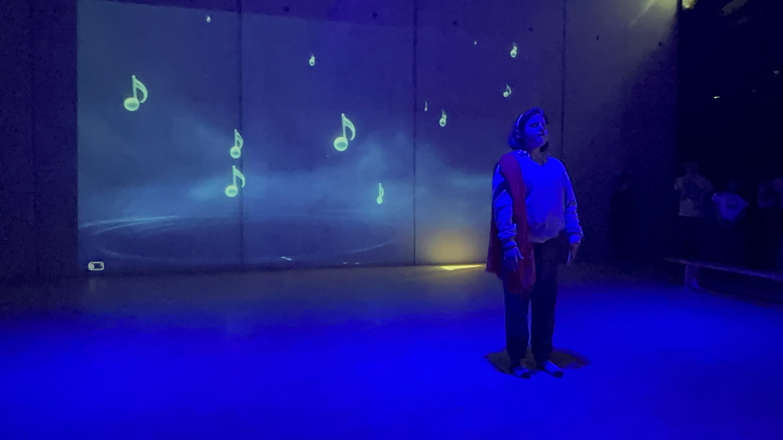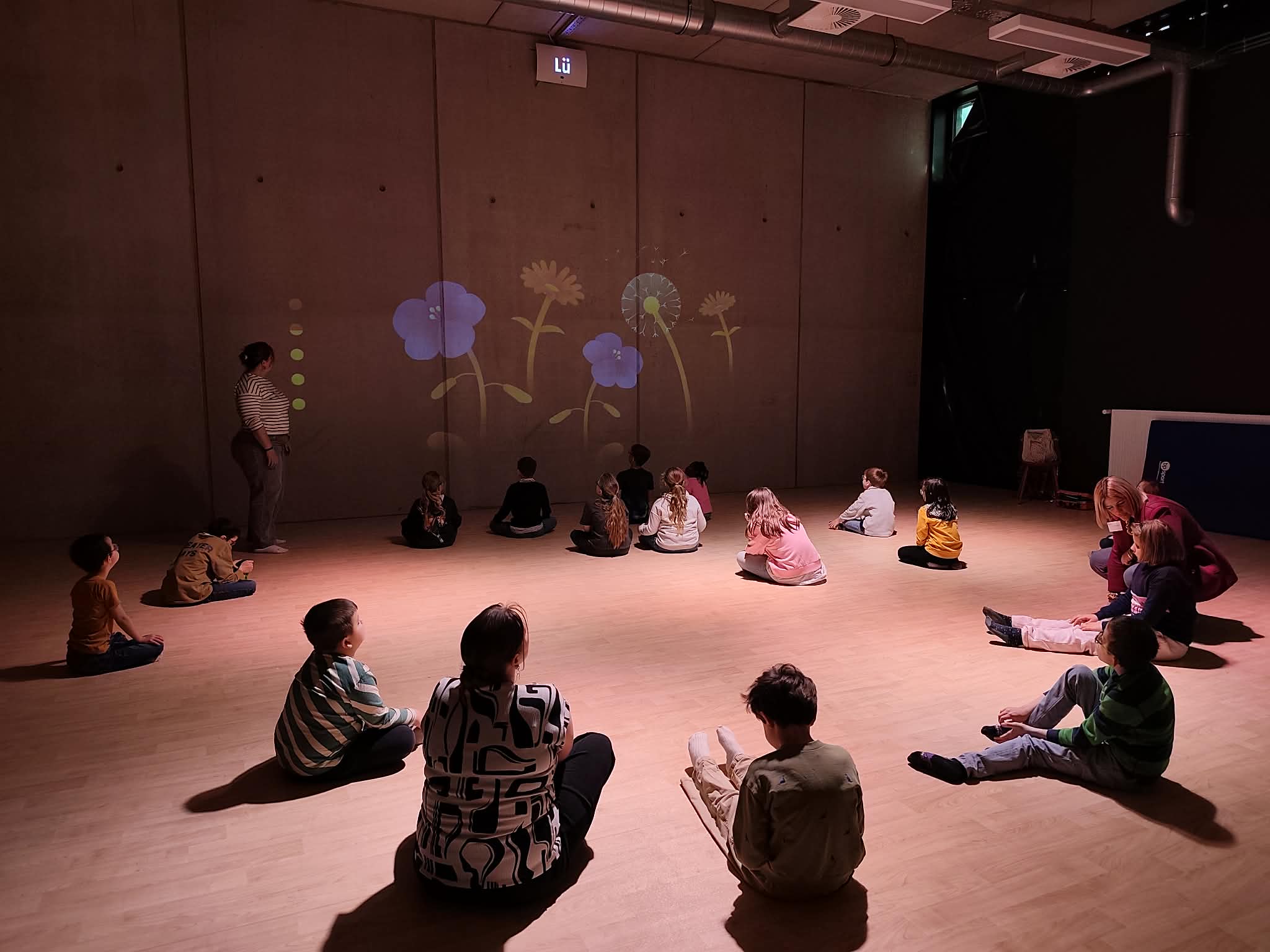 « Ce type de matériel a été développé au Québec et permet une appropriation des contenus pédagogiques par le mouvement complet du corps, ce qui est d’un grand soutien pour nos élèves dys. Les cours de gymnastique y trouvent également une mine de ressources ludiques et motivantes ». Madame Julie ajoute « Nous l’utilisons classiquement en tant qu’outil pédagogique. Il permet un travail important grâce à des exercices pratiques et ludiques, sur les sons, les mots,… C’est très concret pour les élèves ». Et dans ce cas, l’outil a été intégré à ce spectacle qui voyage au travers des émotions humaines avec poésie et expression « Il y aura des animations au mur, au plafond, des ambiances sonores et lumineuses…Plutôt que de créer des décors en papier ou en carton comme c’est en général le cas. Le spectacle sera donc complètement immersif. ».