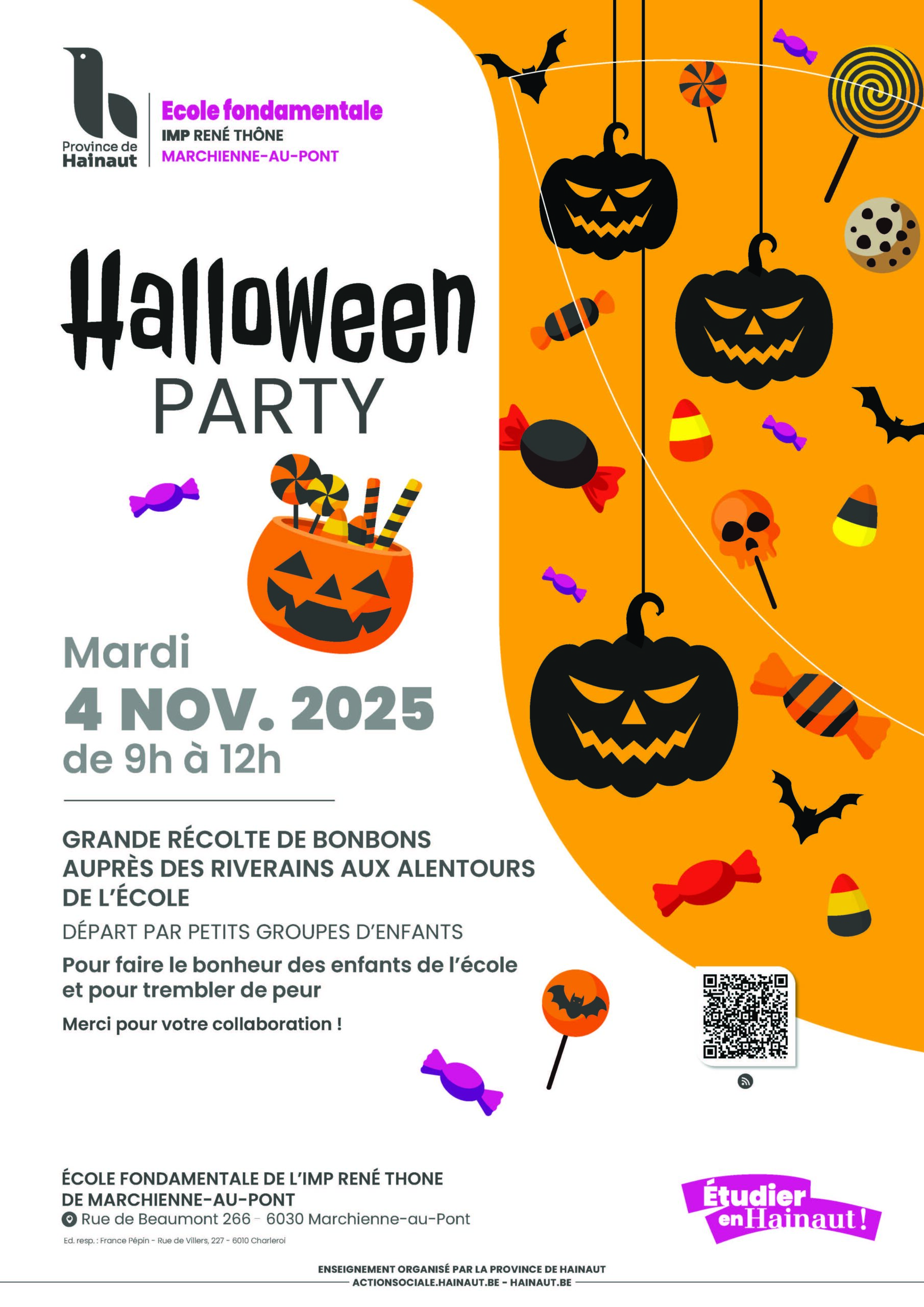 Le mardi 4 novembre 2025, de 9h à 12h, les élèves de l’école fondamentale de l’IMP René Thône de Marchienne-au-Pont partiront à la chasse aux bonbons.